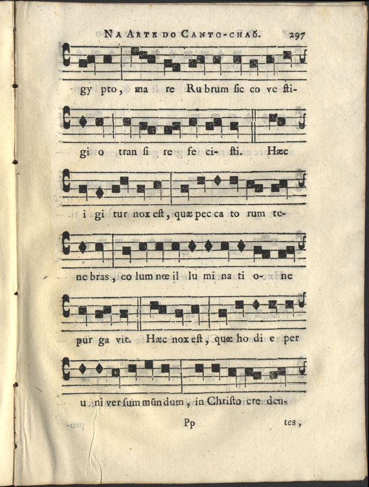 Obra O ecclesiastico instruido scientificamente na arte do canto-chaõ Cópia em JPEG Encadernação DigitalINDICE DOS LIVROS, CAPITULOS, PARAGRAFOS…LIVRO I. Da Theorica do Canto-chaõ. LIVRO II. Em que se poem huma instrucçaõ…conforme uso Romano. LIVRO III. Em que se poem vario Canto-chaõ pratico… O ECCLESIASTICO INSTRUIDO... NA ARTE DO CANTO-CHAÕ.LIVRO PRIMEIROCAPITULO I. Que cousa seja Musica. CAPITULO II. Em que se trata do Systema Musico. CAPITULO III. Em que se explica…em os tres generos. CAPITULO IV. Em que se explica…o genero Diatonico. CAPITULO V. Em que se explica as propriedades…Systema. CAPITULO VI. Em que se explica…conforme os modernos. CAPITULO VII. Em que se trata do Systema Musico… CAPITULO VIII. Em que se trata das Definições…da Musica. CAPITULO IX. Em que se trata da definição dos Signos…se cantaõ. CAPITULO X. Em que se trata das Propriedades, Cantorias,…e Deducções. CAPITULO XI. Em que se trata dos Signaes…no Canto-chaõ. CAPITULO XII. Em que se trata do modo de contar…e das Entoações. CAPITULO XIII. Em que se trata das Mutanças. CAPITULO XIV. Em que se trata das Entoações…dos modernos. CAPITULO XV. Em que se trata dos intervalos…se incluem. CAPITULO XVI. Em que se trata das proporções,…intervalos. CAPITULO XVII. Em que se trata do numero…em particular. CAPITULO XVIII. Em que se trata da variedade…em o Canto-chaõ. CAPITULO XIX. Em o qual se explica…effeitos dos doze tons. CAPITULO XX. Em que se trata…qualquer composiçaõ de Canto-chaõ. CAPITULO XXI. Em que se trata das Disjunctas. CAPITULO XXII. Em que se trata …ou divisaõ de tono. CAPITULO XXIII. Em que se trata do uso de b mol…casos particulares. CAPITULO XXIV. Em que se trata das entoações…no Canto-chaõ. CAPITULO XXV. Em que se trata do…qualquer Antiphona. CAPITULO XXVI. Em que se trata…os Introitos da Missa. CAPITULO XXVII. Em que se trta de todas as Clausulas…doze tons. CAPITULO XXVIII. Em que se trata da Corda choral. CAPITULO XXIX. Em que se trata do Compasso…do Canto-chaõ. CAPITULO XXX. Em o qual se poem…hum bom Cantor. LIVRO SEGUNDO, EM QUE SE POEM HUMA INSTRUCÇAÕ…I. Modo que se deve observar em cantar nas Matinas… II. Modo como se devem cantar todos…e dias feriaes. III. Modo como nas Matinas se devem cantar… IV. Modo como se canta…como nas Laudes. V. Modo como se deve levantar o Hymno… VI. Modo de cantar o Martyrologio. VII. Modo como na Completa…o Verso Deus in adjutorium. VIII. Modo de cantar as Prophecias. IX. Modo como se deve cantar a Epistola. X. Modo como se deve cantar…ao Diacono. XI. Modo de cantar o Ite Missa…festas solemnes. XII. Modo de cantar o Confiteor…Pontifical. XIII. Modo de cantar os Capitulos…ao Presbytero. XIV. Modo de cantar as Orações. XV. Modo de cantar as Orações simples…de todo o anno. XVI. De outro modo, ou tom ferial. XVII. Modo de levantar na Aspersaõ…e Vidi aquam. XVIII. Modo de levantar na Missa…in unum Deum. XIX. Modo de cantar na Missa os Prefacios. XX. Modo como na Sexta feira…que principiaõ todas:Oremus. XXI. Modo como se deve cantar…e semiduplices. XXII. Modo como se deve cantar a bençaõ de Pontifical. XXIII. Modo como se deve cantar a Paixão. XXIV. Modo como se deve cantar…do Cirio Paschal. XXV. Modo de cantar a bençaõ da Fonte no Sabbado Santo. XXVI. Modo como se deve cantar a Ladainha no Sabbado… APPENDIX, Em o qual se poem alguns Hymnos selectos… LIVRO TERCEIRO, EM QUE SE POEM VARIO CANTO-CHAÕ…NA QUARTA FEIRA DE CINZA. SEXTA FEIRA EM PARASCEVE. OFFICIO DA QUINTA FEIRA MAIOR. OFFICIO DA SEXTA FEIRA DE PARASCEVE. OFFICIO DO SABBADO SANTO. OFFICIO DO TRANSITO DO GLORIOSO PATRIARCA S.BENTO. OFFICIO DA TRASLADAÇAÕ DP GLORIOSO PATRIARCA S.BENTO. FESTA DO SS. NOME DE JESUS. FESTA DAS CINCO CHAGAS DE N.S.JESU CHRISTO. FESTA DE N. SENHORA DO DESTERRO. FESTA DE S. THEOTONIO CONFESSOR. FESTA DE S. JOSEPH ESPOSO DA B. V. MARIA. FESTA DA SENHORA DAS DORES. FESTA DOS PRAZERES DA B. V. MARIA. FESTA DO SS. CORAÇAÕ DE N. S. JESU CHRISTO. FESTA DA METERNIDADE DA B. MARIA V. FESTA DE S. JOAÕ DAMASCENO. FESTA DOS CINCO MARTYRES DE MARROCOS. FESTA DE SANTO ANTONIO DE PADUA. FESTA DE S. LUIZ GONZAGA CONFESSOR. FESTA DA PUREZA DA B. VIRGEM MARIA. FESTA DOS SANTOS ANJOS CUSTODIOS. FESTA DOS ARCHANJOS S. RAFAEL. FESTA DOS ARCHANJOS S. GABRIEL. FESTA DE S. ISABEL RAINHA DE PORTUGAL. FESTA DE S. PULCHERIA VIRGEM IMPERATRIZ. FESTA DE S. CAMILLO DE LELLIS CONFESSOR. FESTA DO PATROCINIO DE S. JOSEPH. APPENDIX, EM O QUAL SE POEM OS PSALMOS, E LIÇÕES… PSALMOS, E LIÇÕES DA QUINTA FEIRA MAIOR. PSALMOS, E LIÇÕES DA SEXTA FEIRA em Parasceve. PSALMOS, E LIÇÕES DO SABBADO SANTO. PSALMOS, E ORAÇÕES DAS VESPERAS do Officio dos Defuntos. PSALMOS, E LIÇÕES DAS MATINAS do Officio dos Defuntos. | Encadernação Digital > O ECCLESIASTICO INSTRUIDO... NA ARTE DO CANTO-CHAÕ. > LIVRO SEGUNDO, EM QUE SE POEM HUMA INSTRUCÇAÕ… > XXIV. Modo como se deve cantar…do Cirio Paschal. > 297 Tipo:image/jpeg Tamanho:204 KB Cor:24 bpp