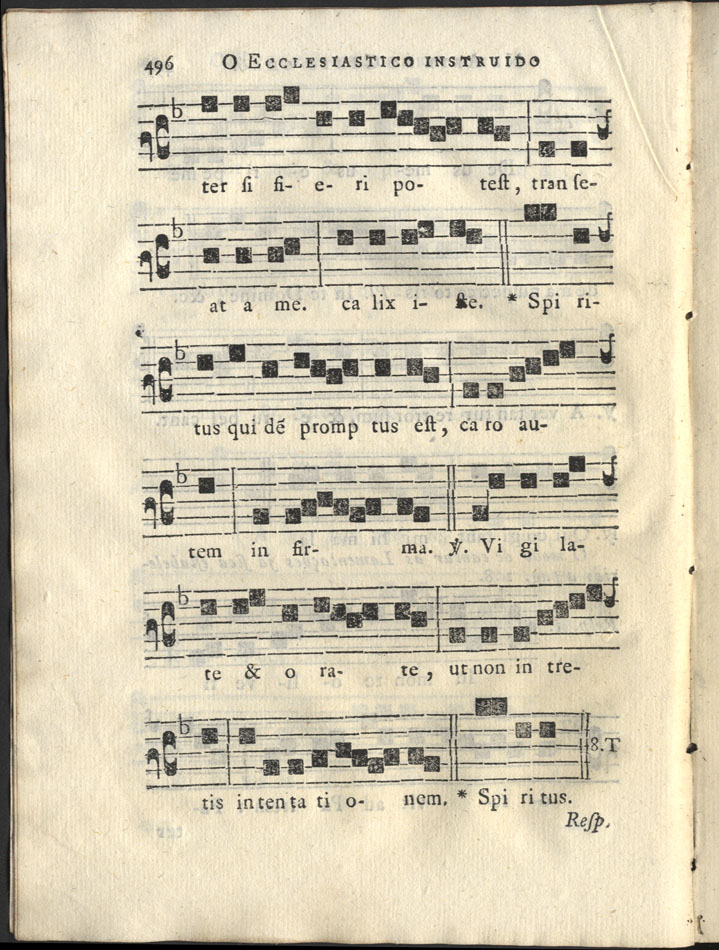 Obra O ecclesiastico instruido scientificamente na arte do canto-chaõ Cópia em JPEG Encadernação DigitalINDICE DOS LIVROS, CAPITULOS, PARAGRAFOS…LIVRO I. Da Theorica do Canto-chaõ. LIVRO II. Em que se poem huma instrucçaõ…conforme uso Romano. LIVRO III. Em que se poem vario Canto-chaõ pratico… O ECCLESIASTICO INSTRUIDO... NA ARTE DO CANTO-CHAÕ.LIVRO PRIMEIROCAPITULO I. Que cousa seja Musica. CAPITULO II. Em que se trata do Systema Musico. CAPITULO III. Em que se explica…em os tres generos. CAPITULO IV. Em que se explica…o genero Diatonico. CAPITULO V. Em que se explica as propriedades…Systema. CAPITULO VI. Em que se explica…conforme os modernos. CAPITULO VII. Em que se trata do Systema Musico… CAPITULO VIII. Em que se trata das Definições…da Musica. CAPITULO IX. Em que se trata da definição dos Signos…se cantaõ. CAPITULO X. Em que se trata das Propriedades, Cantorias,…e Deducções. CAPITULO XI. Em que se trata dos Signaes…no Canto-chaõ. CAPITULO XII. Em que se trata do modo de contar…e das Entoações. CAPITULO XIII. Em que se trata das Mutanças. CAPITULO XIV. Em que se trata das Entoações…dos modernos. CAPITULO XV. Em que se trata dos intervalos…se incluem. CAPITULO XVI. Em que se trata das proporções,…intervalos. CAPITULO XVII. Em que se trata do numero…em particular. CAPITULO XVIII. Em que se trata da variedade…em o Canto-chaõ. CAPITULO XIX. Em o qual se explica…effeitos dos doze tons. CAPITULO XX. Em que se trata…qualquer composiçaõ de Canto-chaõ. CAPITULO XXI. Em que se trata das Disjunctas. CAPITULO XXII. Em que se trata …ou divisaõ de tono. CAPITULO XXIII. Em que se trata do uso de b mol…casos particulares. CAPITULO XXIV. Em que se trata das entoações…no Canto-chaõ. CAPITULO XXV. Em que se trata do…qualquer Antiphona. CAPITULO XXVI. Em que se trata…os Introitos da Missa. CAPITULO XXVII. Em que se trta de todas as Clausulas…doze tons. CAPITULO XXVIII. Em que se trata da Corda choral. CAPITULO XXIX. Em que se trata do Compasso…do Canto-chaõ. CAPITULO XXX. Em o qual se poem…hum bom Cantor. LIVRO SEGUNDO, EM QUE SE POEM HUMA INSTRUCÇAÕ…I. Modo que se deve observar em cantar nas Matinas… II. Modo como se devem cantar todos…e dias feriaes. III. Modo como nas Matinas se devem cantar… IV. Modo como se canta…como nas Laudes. V. Modo como se deve levantar o Hymno… VI. Modo de cantar o Martyrologio. VII. Modo como na Completa…o Verso Deus in adjutorium. VIII. Modo de cantar as Prophecias. IX. Modo como se deve cantar a Epistola. X. Modo como se deve cantar…ao Diacono. XI. Modo de cantar o Ite Missa…festas solemnes. XII. Modo de cantar o Confiteor…Pontifical. XIII. Modo de cantar os Capitulos…ao Presbytero. XIV. Modo de cantar as Orações. XV. Modo de cantar as Orações simples…de todo o anno. XVI. De outro modo, ou tom ferial. XVII. Modo de levantar na Aspersaõ…e Vidi aquam. XVIII. Modo de levantar na Missa…in unum Deum. XIX. Modo de cantar na Missa os Prefacios. XX. Modo como na Sexta feira…que principiaõ todas:Oremus. XXI. Modo como se deve cantar…e semiduplices. XXII. Modo como se deve cantar a bençaõ de Pontifical. XXIII. Modo como se deve cantar a Paixão. XXIV. Modo como se deve cantar…do Cirio Paschal. XXV. Modo de cantar a bençaõ da Fonte no Sabbado Santo. XXVI. Modo como se deve cantar a Ladainha no Sabbado… APPENDIX, Em o qual se poem alguns Hymnos selectos… LIVRO TERCEIRO, EM QUE SE POEM VARIO CANTO-CHAÕ…NA QUARTA FEIRA DE CINZA. SEXTA FEIRA EM PARASCEVE. OFFICIO DA QUINTA FEIRA MAIOR. OFFICIO DA SEXTA FEIRA DE PARASCEVE. OFFICIO DO SABBADO SANTO. OFFICIO DO TRANSITO DO GLORIOSO PATRIARCA S.BENTO. OFFICIO DA TRASLADAÇAÕ DP GLORIOSO PATRIARCA S.BENTO. FESTA DO SS. NOME DE JESUS. FESTA DAS CINCO CHAGAS DE N.S.JESU CHRISTO. FESTA DE N. SENHORA DO DESTERRO. FESTA DE S. THEOTONIO CONFESSOR. FESTA DE S. JOSEPH ESPOSO DA B. V. MARIA. FESTA DA SENHORA DAS DORES. FESTA DOS PRAZERES DA B. V. MARIA. FESTA DO SS. CORAÇAÕ DE N. S. JESU CHRISTO. FESTA DA METERNIDADE DA B. MARIA V. FESTA DE S. JOAÕ DAMASCENO. FESTA DOS CINCO MARTYRES DE MARROCOS. FESTA DE SANTO ANTONIO DE PADUA. FESTA DE S. LUIZ GONZAGA CONFESSOR. FESTA DA PUREZA DA B. VIRGEM MARIA. FESTA DOS SANTOS ANJOS CUSTODIOS. FESTA DOS ARCHANJOS S. RAFAEL. FESTA DOS ARCHANJOS S. GABRIEL. FESTA DE S. ISABEL RAINHA DE PORTUGAL. FESTA DE S. PULCHERIA VIRGEM IMPERATRIZ. FESTA DE S. CAMILLO DE LELLIS CONFESSOR. FESTA DO PATROCINIO DE S. JOSEPH. APPENDIX, EM O QUAL SE POEM OS PSALMOS, E LIÇÕES… PSALMOS, E LIÇÕES DA QUINTA FEIRA MAIOR. PSALMOS, E LIÇÕES DA SEXTA FEIRA em Parasceve. PSALMOS, E LIÇÕES DO SABBADO SANTO. PSALMOS, E ORAÇÕES DAS VESPERAS do Officio dos Defuntos. PSALMOS, E LIÇÕES DAS MATINAS do Officio dos Defuntos. | Encadernação Digital > O ECCLESIASTICO INSTRUIDO... NA ARTE DO CANTO-CHAÕ. > LIVRO TERCEIRO, EM QUE SE POEM VARIO CANTO-CHAÕ… > OFFICIO DA QUINTA FEIRA MAIOR. > 496 Tipo:image/jpeg Tamanho:207 KB Cor:24 bpp