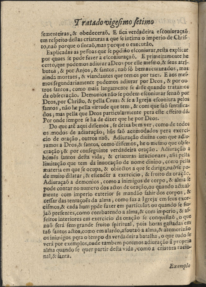 Obra MONTEIRO, Diogo, S.J., 1562-1634 - Arte de orar, 1630. Cópia em JPEG ÍndiceIndice dos capitvlos, e divisam deste Liuro Tratado primeiro: Da Oração em geral Tratado II. Do Autor, e doutrina q[ue] principalme[n]te seguiremos nesta obra Tratado III. Das potencias, e affeitos de nossa alma Tratado IIII. Das virtudes Theologaes, Fè, Esperança, e Charidade Tratado V. Da virtude da Prudencia Tratado VI. Da virtude da Iustiça Tratado VII. Da virtude da Fortaleza Tratado VIII. Da virtude da Temperança Tratado IX. Dos Doe[n]s do Spirito Santo, e graças gratisdatas Tratado X. Do que se acha no liuro dos exercicios, acerca das virtudes, e vicios de que atequi tratàmos Tratado XI. Dos tres estados, que se achão nas virtudes, de que atequi se tratou, e na perfeição Tratado XII. Da virtude da Religião Tratado XIII. Da difinição, e diuisaõ da oração mental em geral Tratado XIIII. Da Meditação Tratado XV. Em que se mostrão os doze tesouros, e arte de meditar do liuro dos exercicios Tratado XVI. Dos tres modos de orar Tratado XVII. Dos aparelhos pera a oração, e meditação Tratado XVIII. Da virtude da Petição Tratado XIX. Da virtude da obsecraçaõ Tratado XX. Da virtvde de insinuação Tratado XXI. Da acção de Graças Tratado XXII. Da Adoração Tratado XXIII. Da virtude do louuor Tratado XXIIII. Do acto do Canto, oitaua especie da virtude da religião Tratado XXV. Do Sacrificio, e oblação. Nona especie, ou acto da virtude da Religião Tratado XXVI. Da decima especie da virtude da Religião, que he voto Tratado XXVII. Das especies 11. 12. 13. 14. da virtude da Religião, que saõ Iuramento, Adiuração, Culto de Sacramentos, e Sacramentaes Tratado XXVIII. Da virtude da Religião, que he Deuação Tratado Vltimo da Contemplação Do methodo de fazer confissam dos pecados Indice das materias e covsas mais principaes [...] | Índice > Tratado XXVII. Das especies 11. 12. 13. 14. da virtude da Religião, que saõ Iuramento, Adiuração, Culto de Sacramentos, e Sacramentaes > 527v Tipo:image/jpeg Tamanho:229 KB Cor:24 bpp