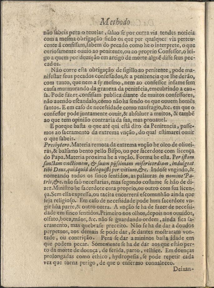 Obra MONTEIRO, Diogo, S.J., 1562-1634 - Arte de orar, 1630. Cópia em JPEG ÍndiceIndice dos capitvlos, e divisam deste Liuro Tratado primeiro: Da Oração em geral Tratado II. Do Autor, e doutrina q[ue] principalme[n]te seguiremos nesta obra Tratado III. Das potencias, e affeitos de nossa alma Tratado IIII. Das virtudes Theologaes, Fè, Esperança, e Charidade Tratado V. Da virtude da Prudencia Tratado VI. Da virtude da Iustiça Tratado VII. Da virtude da Fortaleza Tratado VIII. Da virtude da Temperança Tratado IX. Dos Doe[n]s do Spirito Santo, e graças gratisdatas Tratado X. Do que se acha no liuro dos exercicios, acerca das virtudes, e vicios de que atequi tratàmos Tratado XI. Dos tres estados, que se achão nas virtudes, de que atequi se tratou, e na perfeição Tratado XII. Da virtude da Religião Tratado XIII. Da difinição, e diuisaõ da oração mental em geral Tratado XIIII. Da Meditação Tratado XV. Em que se mostrão os doze tesouros, e arte de meditar do liuro dos exercicios Tratado XVI. Dos tres modos de orar Tratado XVII. Dos aparelhos pera a oração, e meditação Tratado XVIII. Da virtude da Petição Tratado XIX. Da virtude da obsecraçaõ Tratado XX. Da virtvde de insinuação Tratado XXI. Da acção de Graças Tratado XXII. Da Adoração Tratado XXIII. Da virtude do louuor Tratado XXIIII. Do acto do Canto, oitaua especie da virtude da religião Tratado XXV. Do Sacrificio, e oblação. Nona especie, ou acto da virtude da Religião Tratado XXVI. Da decima especie da virtude da Religião, que he voto Tratado XXVII. Das especies 11. 12. 13. 14. da virtude da Religião, que saõ Iuramento, Adiuração, Culto de Sacramentos, e Sacramentaes Tratado XXVIII. Da virtude da Religião, que he Deuação Tratado Vltimo da Contemplação Do methodo de fazer confissam dos pecados Indice das materias e covsas mais principaes [...] | Índice > Do methodo de fazer confissam dos pecados > 42v Tipo:image/jpeg Tamanho:230 KB Cor:24 bpp