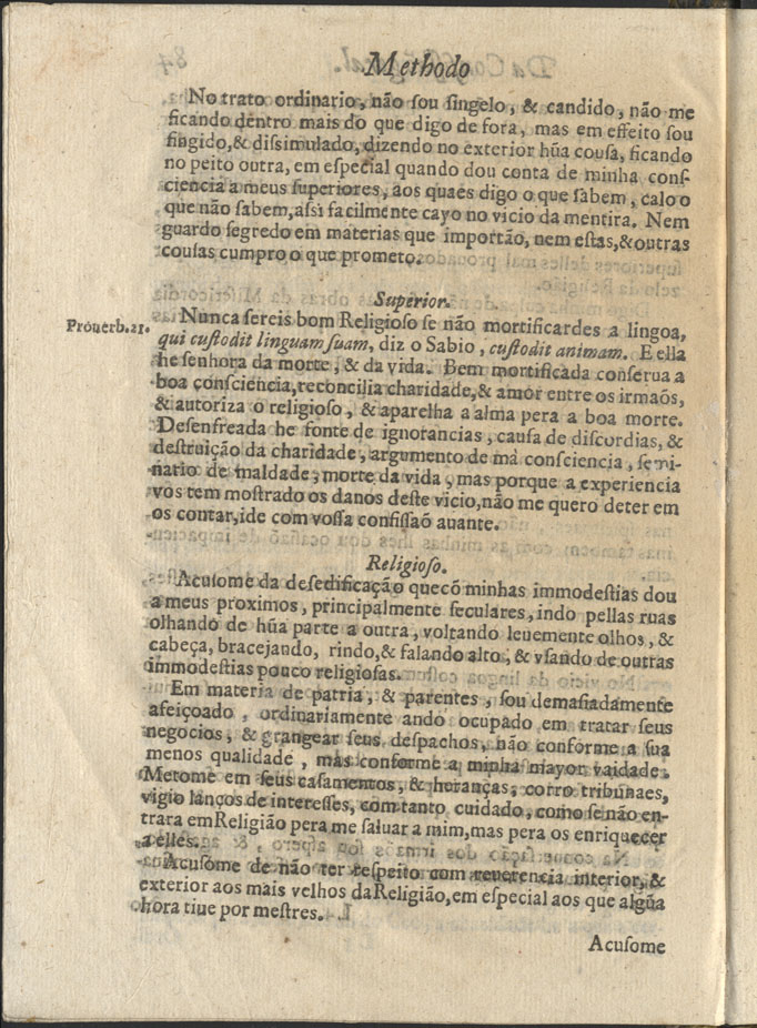 Obra MONTEIRO, Diogo, S.J., 1562-1634 - Arte de orar, 1630. Cópia em JPEG ÍndiceIndice dos capitvlos, e divisam deste Liuro Tratado primeiro: Da Oração em geral Tratado II. Do Autor, e doutrina q[ue] principalme[n]te seguiremos nesta obra Tratado III. Das potencias, e affeitos de nossa alma Tratado IIII. Das virtudes Theologaes, Fè, Esperança, e Charidade Tratado V. Da virtude da Prudencia Tratado VI. Da virtude da Iustiça Tratado VII. Da virtude da Fortaleza Tratado VIII. Da virtude da Temperança Tratado IX. Dos Doe[n]s do Spirito Santo, e graças gratisdatas Tratado X. Do que se acha no liuro dos exercicios, acerca das virtudes, e vicios de que atequi tratàmos Tratado XI. Dos tres estados, que se achão nas virtudes, de que atequi se tratou, e na perfeição Tratado XII. Da virtude da Religião Tratado XIII. Da difinição, e diuisaõ da oração mental em geral Tratado XIIII. Da Meditação Tratado XV. Em que se mostrão os doze tesouros, e arte de meditar do liuro dos exercicios Tratado XVI. Dos tres modos de orar Tratado XVII. Dos aparelhos pera a oração, e meditação Tratado XVIII. Da virtude da Petição Tratado XIX. Da virtude da obsecraçaõ Tratado XX. Da virtvde de insinuação Tratado XXI. Da acção de Graças Tratado XXII. Da Adoração Tratado XXIII. Da virtude do louuor Tratado XXIIII. Do acto do Canto, oitaua especie da virtude da religião Tratado XXV. Do Sacrificio, e oblação. Nona especie, ou acto da virtude da Religião Tratado XXVI. Da decima especie da virtude da Religião, que he voto Tratado XXVII. Das especies 11. 12. 13. 14. da virtude da Religião, que saõ Iuramento, Adiuração, Culto de Sacramentos, e Sacramentaes Tratado XXVIII. Da virtude da Religião, que he Deuação Tratado Vltimo da Contemplação Do methodo de fazer confissam dos pecados Indice das materias e covsas mais principaes [...] | Índice > Do methodo de fazer confissam dos pecados > 84v Tipo:image/jpeg Tamanho:215 KB Cor:24 bpp