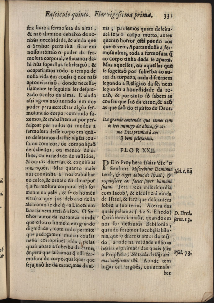 Obra MADRE DE DEUS, Faustino, O.F.M. - Primeira parte do Florilegio Espiritual ..., 1656. Cópia em JPEG Índice [Portada] [Taxa] [Psalmus 119 (118), 1] Fascicvlo primeiro. Da felicidade do estado, e vida Religiosa, chea de commodidades pera acquirir os bens da gloria [Psalmus 119 (118), 2] Fascicvlo segvndo. Dos proueitos da via da perfeição 83 84 85 86 87 88 89 90 91 92 93 94 95 96 97 98 99 100 101 102 103 104 105 106 107 108 109 110 111 112 113 114 115 116 117 118 119 120 121 122 123 124 125 126 127 128 129 130 131 132 133 134 135 136 137 138 139 140 141 142 143 144 145 146 147 148 149 150 151 152 153 154 155 156 157 158 159 160 161 162 163 164 [Psalmus 119 (118), 3] Fascicvlo terceiro. Da pena que hão de ter os religiosos imperfeitos [Psalmus 119 (118), 4; Fascicvlo qvarto. Da reuerencia que a Deos deuemos, e obediencia a seus preceitos] [Psalmus 119 (118), 5] Fascicvlo qvinto. Da rectificação das affeiçoe[n]s 260 261 262 263 264 265 266 267 268 269 270 271 272 273 274 275 276 277 278 279 280 281 282 283 284 285 286 287 288 289 290 291 292 293 294 295 296 297 298 299 300 301 302 303 304 305 306 307 308 309 310 311 312 313 314 315 316 317 318 319 320 321 322 323 324 325 326 327 328 329 330 331 332 333 334 335 336 337 338 339 340 341 342 343 344 345 346 [Psalmus 119 (118), 6; Fascicvlo sexto. Da consideração do juizo 346 347 348 349 350 351 352 353 354 355 356 357 358 359 360 361 362 363 364 365 366 367 368 369 370 371 372 373 374 375 376 377 378 379 380 381 382 383 384 385 386 387 388 389 390 391 392 393 394 395 396 397 398 399 400 401 402 403 404 405 406 407 408 409 410 411 412 413 414 415 416 417 418 419 420 421 422 423 424 425 426 427 428 429 [Psalmus 119 (118), 7; Fascicvlo septimo. Da temperança no viuer] [Psalmus 119 (118), 8] Fascicvlo octavo. Da virtude da fortaleza [Nota] | Índice > [Psalmus 119 (118), 5] Fascicvlo qvinto. Da rectificação das affeiçoe[n]s > 331 |