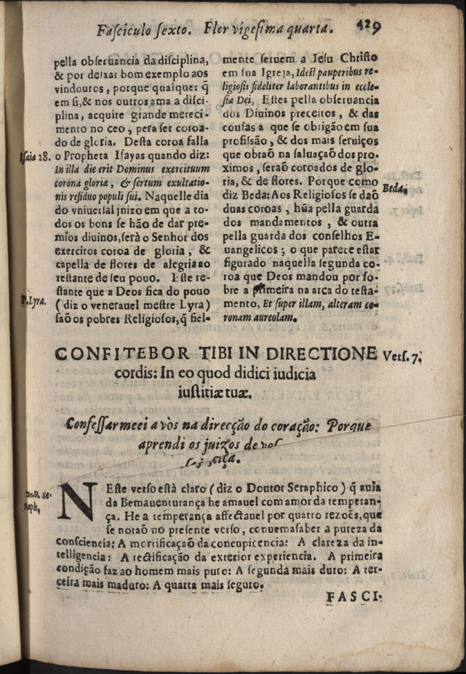 Obra MADRE DE DEUS, Faustino, O.F.M. - Primeira parte do Florilegio Espiritual ..., 1656. Cópia em JPEG Índice [Portada] [Taxa] [Psalmus 119 (118), 1] Fascicvlo primeiro. Da felicidade do estado, e vida Religiosa, chea de commodidades pera acquirir os bens da gloria [Psalmus 119 (118), 2] Fascicvlo segvndo. Dos proueitos da via da perfeição 83 84 85 86 87 88 89 90 91 92 93 94 95 96 97 98 99 100 101 102 103 104 105 106 107 108 109 110 111 112 113 114 115 116 117 118 119 120 121 122 123 124 125 126 127 128 129 130 131 132 133 134 135 136 137 138 139 140 141 142 143 144 145 146 147 148 149 150 151 152 153 154 155 156 157 158 159 160 161 162 163 164 [Psalmus 119 (118), 3] Fascicvlo terceiro. Da pena que hão de ter os religiosos imperfeitos [Psalmus 119 (118), 4; Fascicvlo qvarto. Da reuerencia que a Deos deuemos, e obediencia a seus preceitos] [Psalmus 119 (118), 5] Fascicvlo qvinto. Da rectificação das affeiçoe[n]s 260 261 262 263 264 265 266 267 268 269 270 271 272 273 274 275 276 277 278 279 280 281 282 283 284 285 286 287 288 289 290 291 292 293 294 295 296 297 298 299 300 301 302 303 304 305 306 307 308 309 310 311 312 313 314 315 316 317 318 319 320 321 322 323 324 325 326 327 328 329 330 331 332 333 334 335 336 337 338 339 340 341 342 343 344 345 346 [Psalmus 119 (118), 6; Fascicvlo sexto. Da consideração do juizo 346 347 348 349 350 351 352 353 354 355 356 357 358 359 360 361 362 363 364 365 366 367 368 369 370 371 372 373 374 375 376 377 378 379 380 381 382 383 384 385 386 387 388 389 390 391 392 393 394 395 396 397 398 399 400 401 402 403 404 405 406 407 408 409 410 411 412 413 414 415 416 417 418 419 420 421 422 423 424 425 426 427 428 429 [Psalmus 119 (118), 7; Fascicvlo septimo. Da temperança no viuer] [Psalmus 119 (118), 8] Fascicvlo octavo. Da virtude da fortaleza [Nota] | Índice > [Psalmus 119 (118), 7; Fascicvlo septimo. Da temperança no viuer] > 429 |